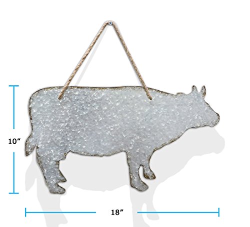 FARMHOUSE ACCENT - Detailed galvanized cow cutout with rustic & faded edges gives this piece a country home decor feel. Cutout measures 18" x 10".