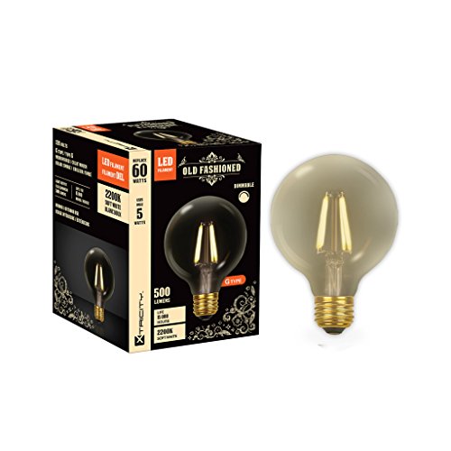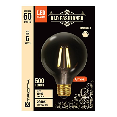 Xtricity Dimmable LED Filament G40 Vintage Light Bulb Edison Style, 5W (60W Equivalent), E26 Medium Base Screw, 2200K Soft White, Ideal for String Lights and Vintage Lighting Looks, (Pack of 1)