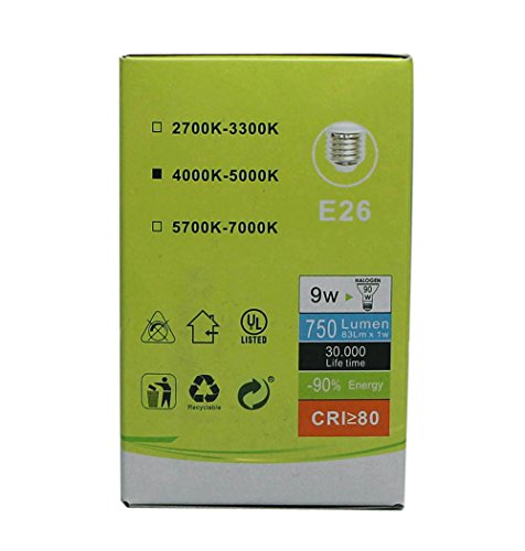 Led Bulbs Par 20, 9W(90W Equivalent),5000 K (Crystal White Glow),E26 Medium Base, Energy Star, Pack of 4 (9W)
