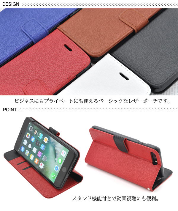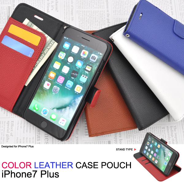 カラフルなレザーのiPhone7 Plus用スタンドケースポーチ。