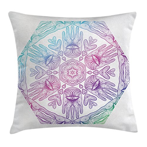 (Ambesonne)/Bedding Bath/Bedding/DIRECT FROM USA/Hamsa Throw Pillow Cushion Cover by Ambesonne, Evil Eye Themed Boho Ombre Color Pattern Hamsa H...