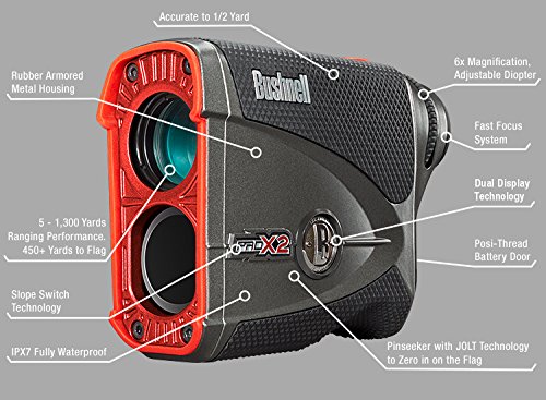 BUNDLE INCLUDES: Bushnell Pro X2 Golf Laser Rangefinder (Slope & Non-Slope Function), Carrying Case, PlayBetter Microfiber Towel, Lens Cloth and Two (2) CR2 Batteries