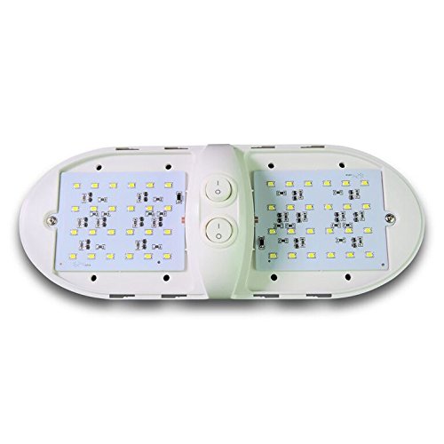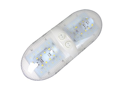 11-18V LED Double Dome Light Fixture comes with two 921 Wedge base, 2 x 275 Lumens, Cool White (6000-6500K)