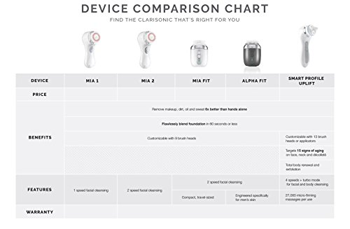 Mia1 is the gentle, one speed cleansing brush for basic sonic cleansing. Clarisonic uses two mechanisms to give clean, radiant skin: oscillation technology and fluid forces. Oscillation technology means 300 micro massage movements happen every second to work within skin’s natural elasticity to sweep away dirt, oil and makeup. Fluid forces means Clarisonic takes the water on your cleansing device and uses it to flush pores clean. After only 60 seconds these patented technologies leave skin cleansed 6x better than hands alone and ready for treatment products or smooth makeup application.Feature