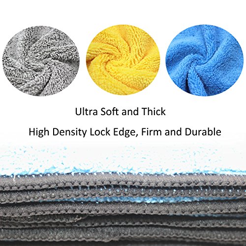 - AFFORDABLE AND MULTIPRURPOSE: 12 packs, three colors: gray, blue and yellow, each color has 4 packs. Assorted cloth colors help designate cleaning areas to avoid cross-contamination, such as the kitchen and bathroom. It can be used dry and wet for crystal, mirrors, tiles, windows, cars, hands, dishes, glasses etc.