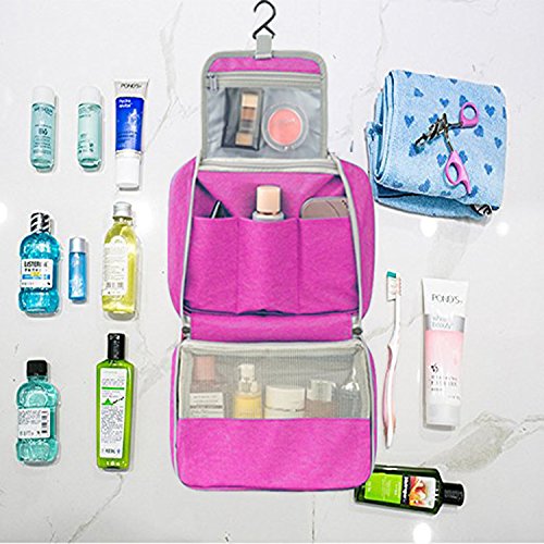 - 4 Layers Keep Goods Seperate: the first layer is for toothpaste, razor, two big room for shampoo, lotion, cream, cleanser, face towel, another layer has three small room for cosmectic powder, lipstics, this is a compact but large capacity bag.