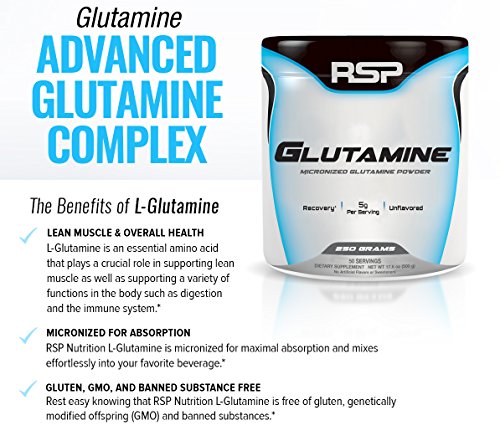 Glutamine from RSP Nutrition. Formulated to increase indurance, build muscle, burn fat & recover faster, RSP Nutrition has created the perfect sports supplement stack. Join the revolution and take your workout to the next level with these revolutionary sports performance products. RSP focuses on the functional traits that improve your overall athletic & sports performance to emphasis your greatest assets. Revolutionize your body and workout routine with RSP Nutrition.Feature