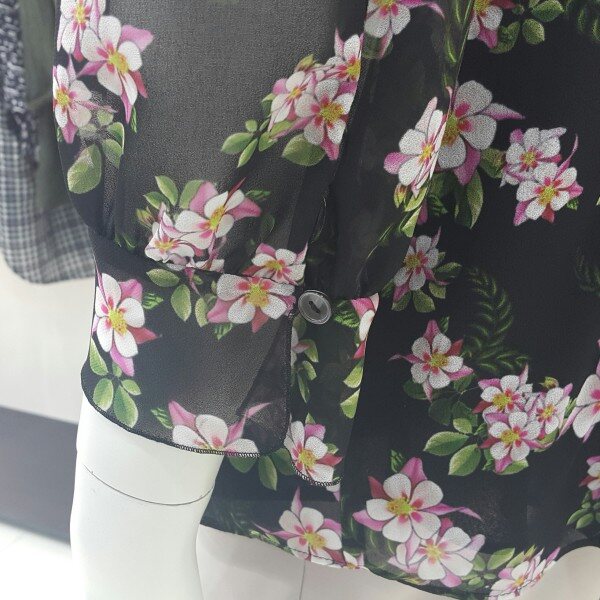 화려하고 부드러운 쉬폰소재의블라우스입니다플라워 문양이 아름답습니다시스루 느낌의 블라우스입니다다양한 아이템으로 연출해 보세요~