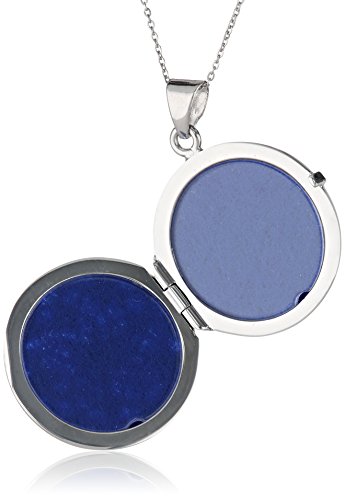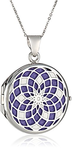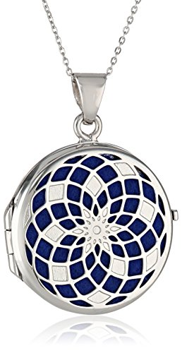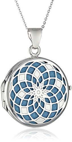 Round sterling silver locket featuring cutout pattern with contrast underlay