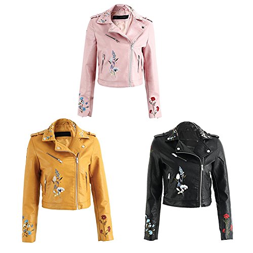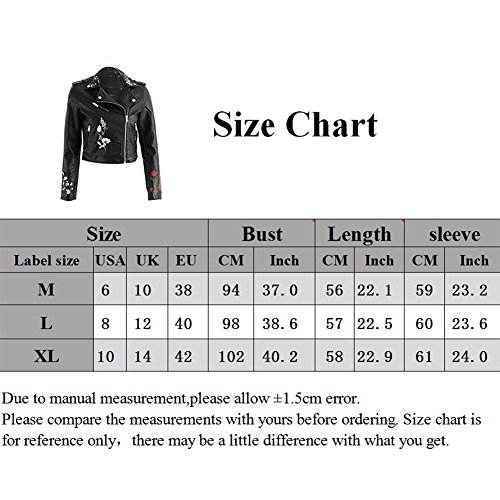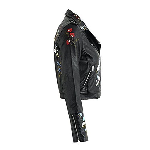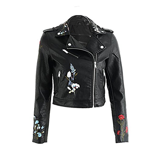 -. Feature : 花柄刺繍を入れている上品の合皮ジャケットの一枚です;レザーブルゾンは1枚持っているとスタイリングの幅がグッと広がる大活躍アイテムです; / ウエスト位置が高く見てるのショート丈;マキシ丈スカートやボリュームスカートとバランスが取りやすい絶妙な丈感;トレンドのジャストウエストのテーパードパンツとも相性抜群のサイズ感; / スタンダードな使えるライダースジャケット 柔らかいフェイクレザーを生地でごわつきにくく着心地抜群;ファスナーを丁寧に叩きつけて格好いいデザインです; / 素材は上質のPUレザー、雨にぬれてもお手入れが簡単で扱いやすいのも嬉しいですね! / 襟にスナップボタンがついていたり、ジッパーの装飾がついてかっこいい感じのお洒落; 裏地もしっかりついてこだわりを感じられている総裏の上品コートになり;通勤もお出かけもぴったり;;女性らしいシルエット、柔らかく軽いので気軽に使えてこれからの季節に大活躍します!