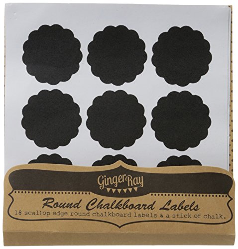 Ginger Ray Jam Jar Blackboard Reusable Round Chalkboard Sticker Labels with Chalk (12 Pack), Black