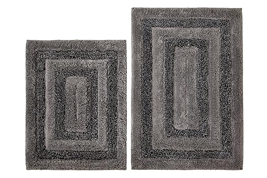 - 2 Piece Bath Rug Set - Tweed Race Track - Grey Black.