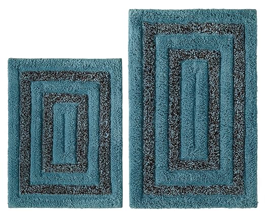 - Super soft and plush 100% cotton. Large rug is Oblong and measures 21x32 smaller rug is Oblong and measures 18x24.