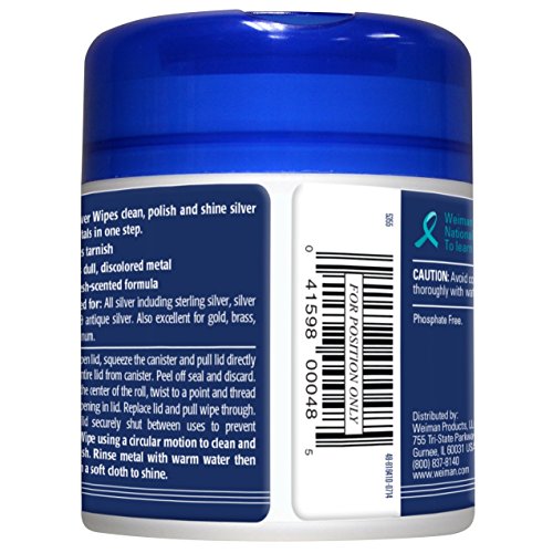 Weiman silver wipes clean, polish and protect silver and most metals in one simple step. Weiman's gentle yet powerful, 1-rated silver polish is now available in an easy-to-use wipe. This unique, anti-tarnish formula instantly removes tarnish and revives dull, discolored metal.