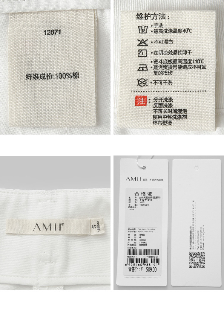 洗涤标准:40℃以下手洗不可漂白不可浸泡悬挂晾干不可干洗110℃以下垫布熨烫