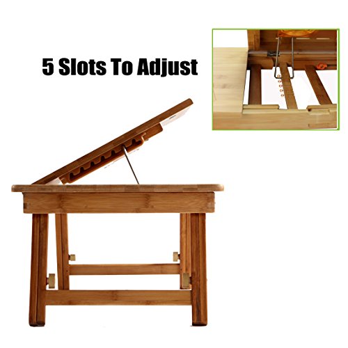 -. Title : Laptop Desk Beaucoup Bamboo Desk Laptop Table Adjustable 100% Bamboo with USB Fan*2 Foldable Serving Bed Tray Drawer
