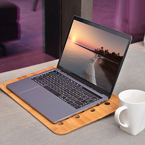 -. Feature : [Comfortable to use] Promotes right posture, feels like using a regular table. Ultra lightweight / [Thoughtful design] Natural Bamboo high quality material, unique design and functionality. / [Heat protection] Airflow channel reduces unwanted heat generated by the Laptop/Notebook / [Two silicone ball] Provides a tilted angle for your laptop to prevent wrist, neck and eye strain, as well as keeps it from sliding down. Also it can hold the cable. / [Applications]Compact and portable, suitable for indoor and outdoor use. You can use it on the bed, sofa, floor, desk, or on the lap, and etc.