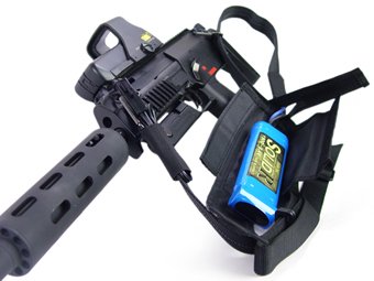 Since external batteries can be used instead of genuine batteries with small capacity, it is possible to easily improve the number of shot bullets and launch cycles.