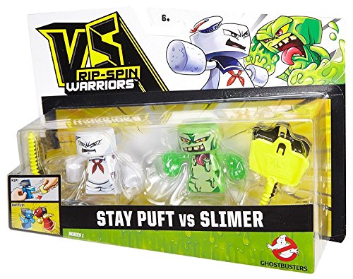 -. Binding : Toy -. Brand : Mattel -. EAN : 0887961336047 -. Feature : It's the ultimate faceoff with the VS Rip-Spin Warriors 2-Pack! / Prepare for battle by pling in the adjustable spincessories on the two iconic rival characters / Then pull the ripcord on each VS Warrior to activate the flywheel / Now you're ready for spin-tastic battle action! / Pit each VS Warrior against each other to battle in all-new ways with stunting action -. IsAdultProduct : 0 -. Label : Mattel -. Manufacturer : Mattel -. Model : DRJ41 -. MPN : DRJ41 -. PackageQuantity : 1 -. PartNumber : DRJ41 -. ProductGroup : Toy -. ProductTypeName : TOYS_AND_GAMES -. Publisher : Mattel -. ReleaseDate : 2016-06-01 -. Studio : Mattel -. Title : VS Rip-Spin Warriors Ghostbusters 2 Pack - Stay Puft vs Slimer -. UPC : 887961336047 -. Warranty : 1 year warranty against manufacturer defects