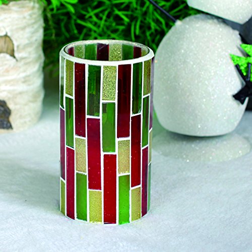 Multi Color Stripe Pattern Mosaic Glass Flameless LED Wax Candle Light with Timer