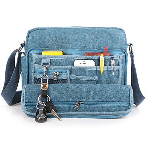 -. Feature : Main Material:High quality cotton canvas;Lining: Polyester. / Approx Dimensions: 11.8(L) x 3.94(W) x 10.24(H) inches / Structure: 1 main zipper Pocket in the middle, 1 front zipper pocket with two zip pocket inside; more than 5 open inner Pockets for cards,and 1 back zipper pocket. Lot's of Pockets! / 1 YEAR WARRANTY.Eco-friendly casual life tyle, large size with multiple pockets, ideal for keeping personal belongings when working, hiking, travelling ect. / It's a very durable messenger bag that you will receive many compliments from your family and friends.