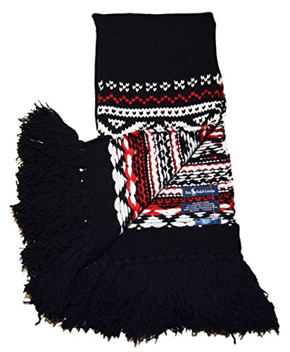 Polo Ralph Lauren Mens Womens Nordic Wool Cashmere Winter Ski Scarf Black Red