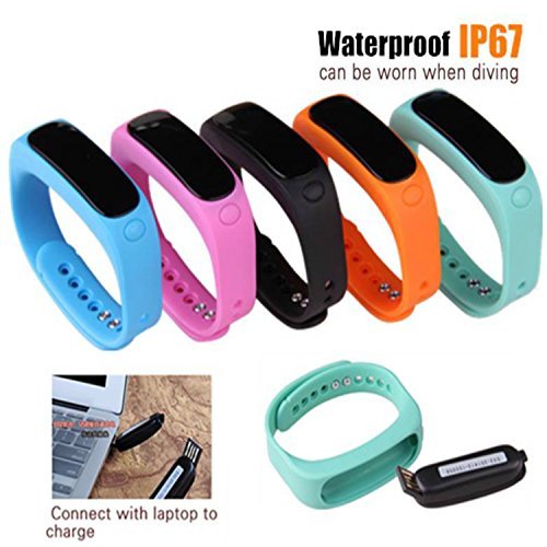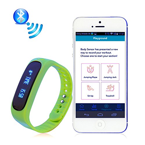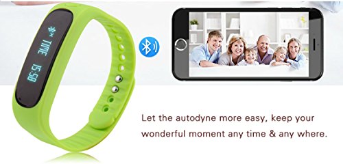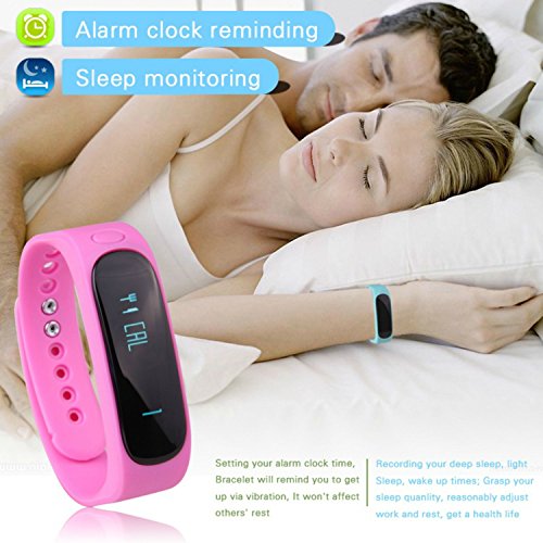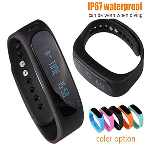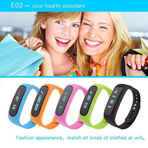 -. Feature : Amazing Fitness Tracker that Tracks all your Fitness Moves: This fitness tracker tracks all your fitness activities with its amazing features - Health, Calories/ Distance Tracking, Sleep Monitor, Goal Setting. It also allows you to track multiple exercises with its Multi-Exercise Mode - sit-ups, jumps, treadmill, estimated steps counts (body tilts). It also allows you to share your day's workout schedule and progress with your friends on Facebook and Twitter. / An Upgraded System: The E02+ (Upgrade) replaces the previous E02 version with some exciting features such as a new CPU (A8107 V4.0BLE instead of TI 2254), Smart Key with additional functions, expanded display info with new reminding options and IP67 waterproof level (instead of IP57). Works best with all Android Smartphones and iPhones. / More Colors to choose from: The fitness tracker comes with a set of three multi-color replacement wristbands - black, blue, and orange! Exciting colors, isn't it? You can easily select the wristband of your choice. Simply remove your tracker and put it into your colorful band! / High Waterproof Level: The pedometer bracelet comes with a higher level of waterproofing. The waterproof level of the fitness tracker is IP67 that is competent enough to stand water immersion up to one meter for 30 minutes easily! Brilliant, isn't it? / No More Charging Hassles: Worried about the charging hassles accompanied with most of the fitness devices? No worries if you are using this fitness tracker. Charging is easy now. The fitness tracker has USB plug on one side - just remove the core from the band and charge it using any USB inlet. You can remove and change the band color too!