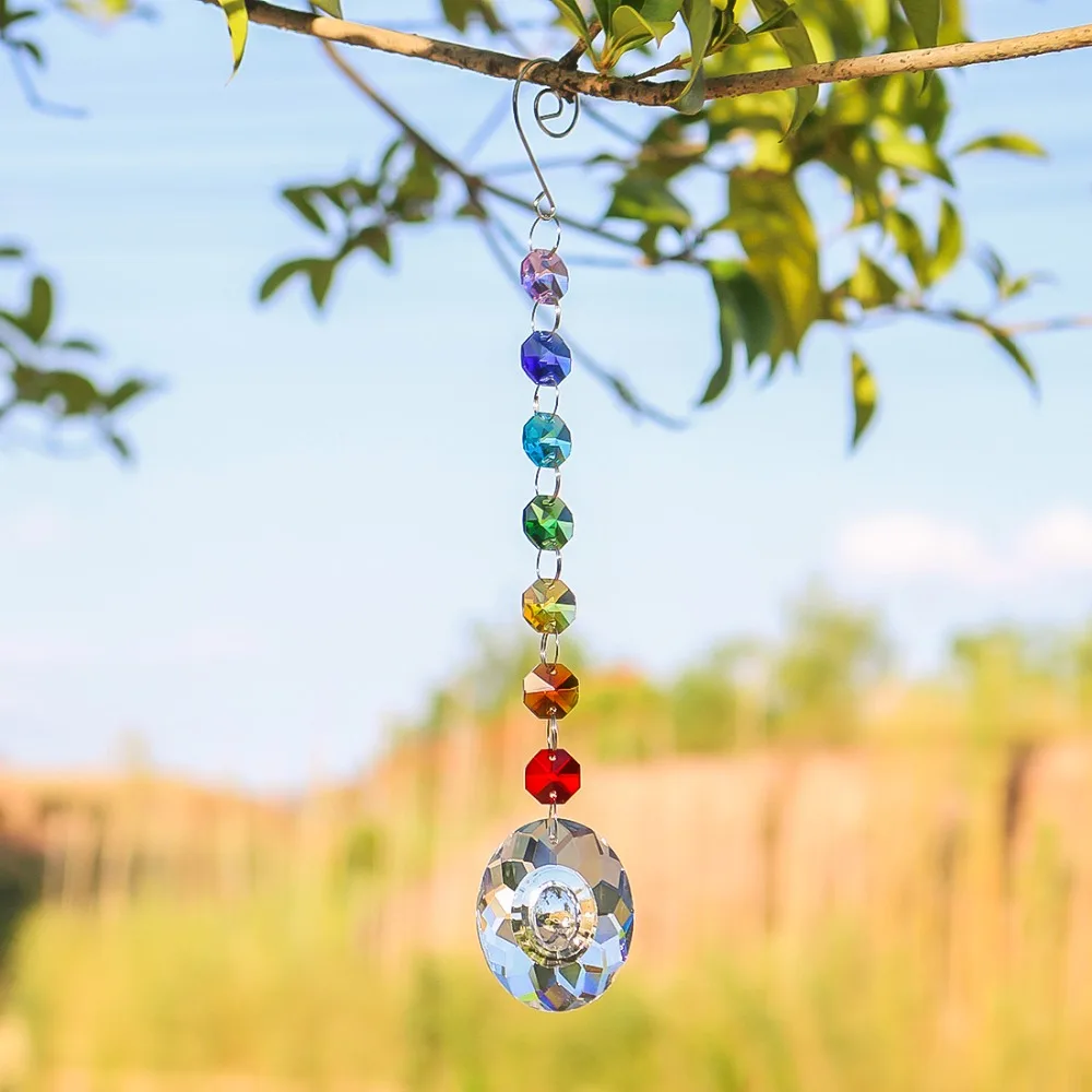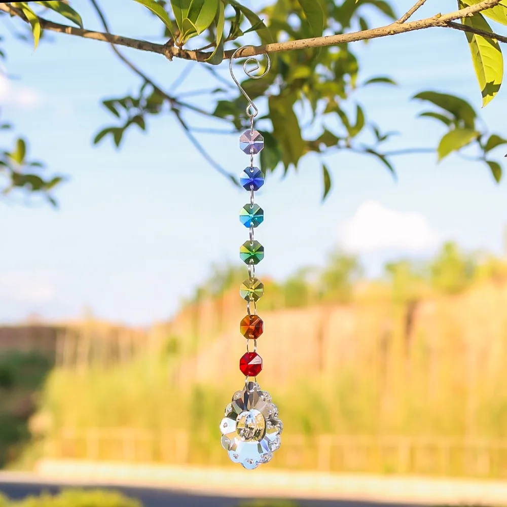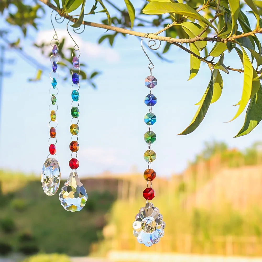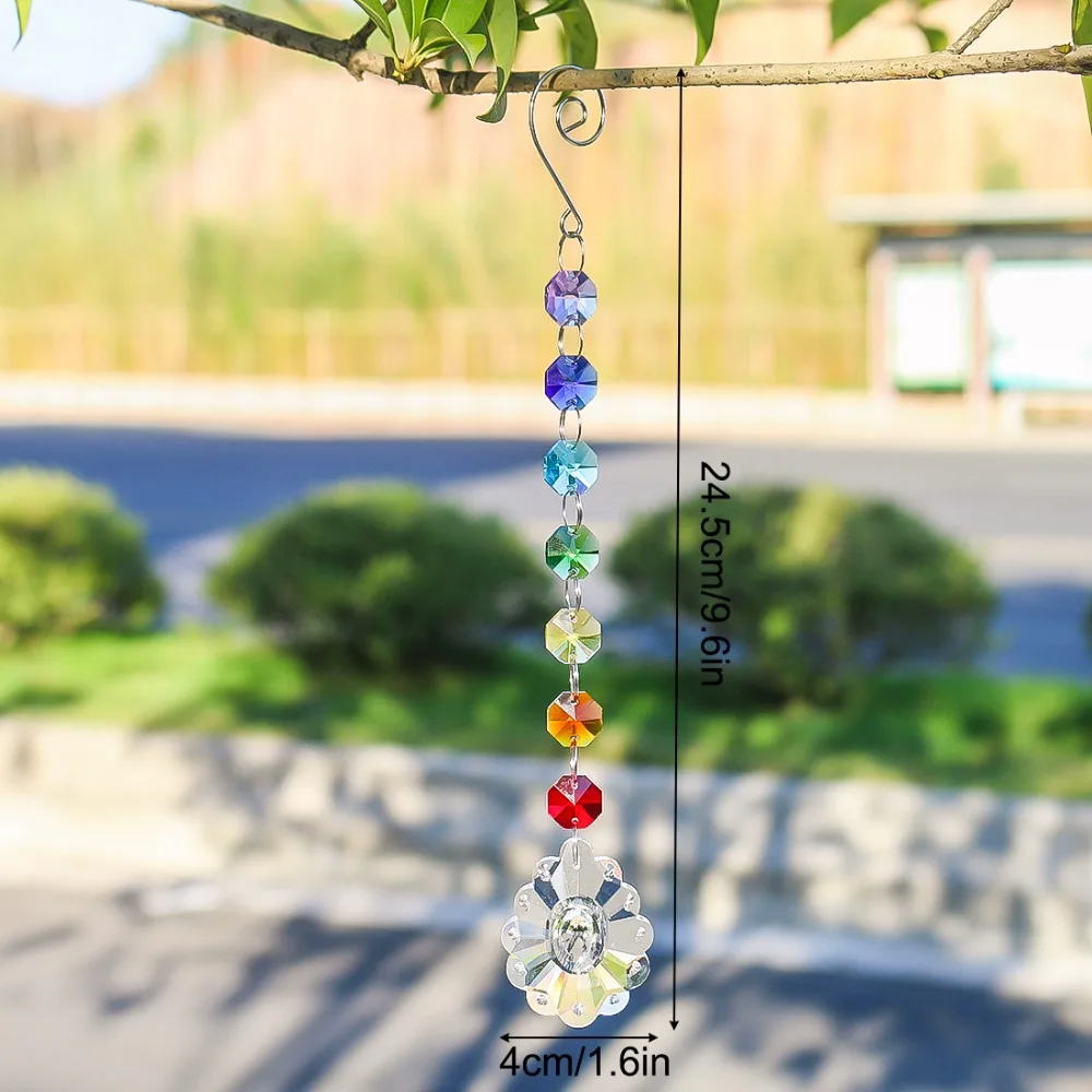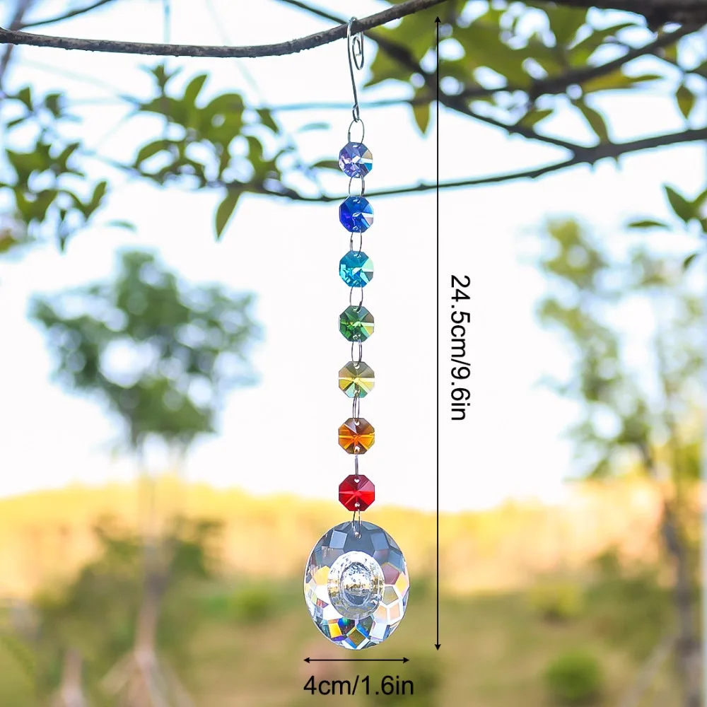 Bottom pendant size :50mm :Hanging crystal suncatchers Size :9.6*1.6inch