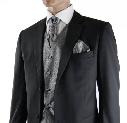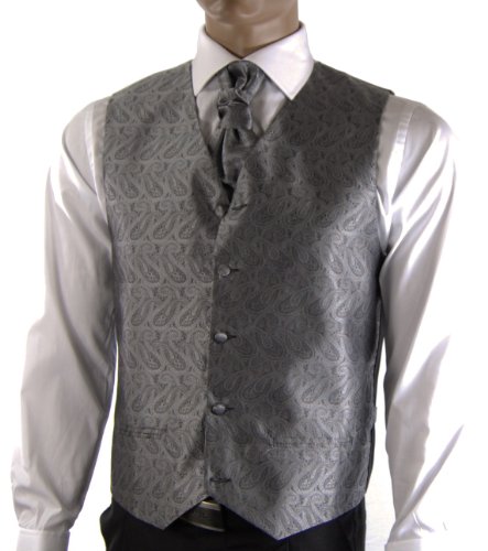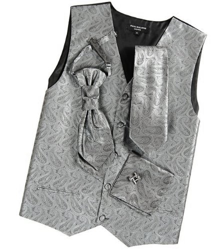 - Feature : Full Back Tuxedo Vest / Color: Silver-Gray / Includes 5 items: Tuxedo Vest, Necktie, Cravat, Cufflinks and Pocket Square / Brand: Paul Malone / Regular Fit