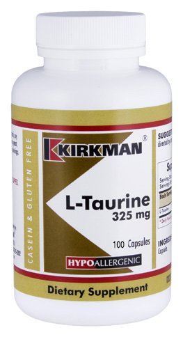 -. Binding : Health and Beauty -. Brand : Kirkman Labs -. EAN : 0812325020232 -. Feature : Protects the body from free radicals. / STORE IN A COOL DRY PLACE AND TIGHTLY CAPPED. KEEP OUT OF THE REACH OF CHILDREN. / Amino Acids / Capsules / 100 ct -. Label : Kirkman Labs -. LegalDisclaimer : These statements have not been evaluated by the Food & Drug Administration. This product is not intended to diagnose, treat, cure or prevent any disease. -. Manufacturer : Kirkman Labs -. PackageQuantity : 1 -. ProductGroup : Health and Beauty -. ProductTypeName : HEALTH_PERSONAL_CARE -. Publisher : Kirkman Labs -. Size : 100 ct -. Studio : Kirkman Labs -. Title : L-Taurine 325 mg Capsules - Hypo -. UPC : 812325020232