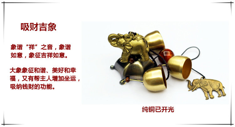 总长约:35cm 铃铛直径约:2.8cm 整体重量约:160g 葫芦、貔貅、大象、龙头龟、海豚、马材质:树脂 鲤鱼、孔雀材质:金属