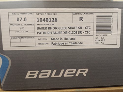 Studio : Bauer Publisher : Bauer Product Description The Bauer RH XR: Glide Skate Senior Roller Hockey Skates, Size 7 is designed to give players explosive acceleration and power in the Bauer Vapor Line. Features: Quarter Package- Sublimated woven mesh with New molded X-rib pattern and injected PP backer. Lining Material- Brushed nylon. Heel Support- Exterior embossed heel cup/ankle support. Tongua Construction- Anatomical 1 piece white felt tongue. Footbed- Standard footbed. Outsole- Injected TPR. Chassis- Violator HI-LO Vanguard Wheels Bauer XR2: 78A 76MM (front) 78A 80MM (back) Indoor / Outdoor. Wheels- Bauer XR2 Indoor/Outdoor 78A Bearing- ABEC 5. 0