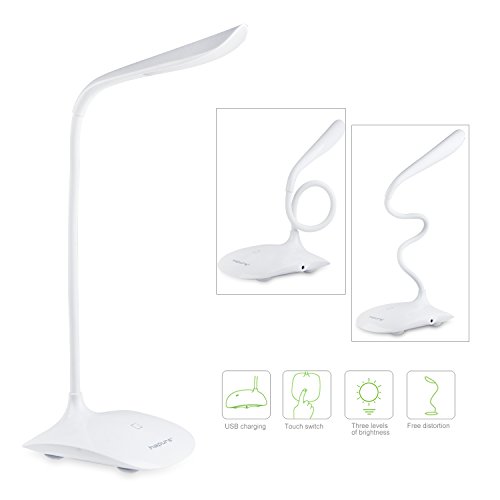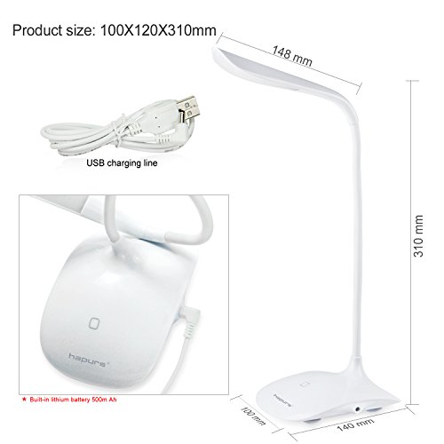Hapurs eye-friendly Table Desk Reading Lamp Torch, Portable Flexible Neck LED Light with 3 dimmer supply 3 level adjustable Brightness book light, Rechargeable Lithium Battery USB charge LED Desk Lamp Reading Lamp Book Light camping lamp...