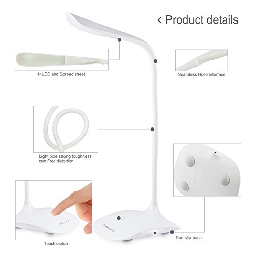 Mini portable design, goose neck, touch control, only need touch for turn on / off and light level change.