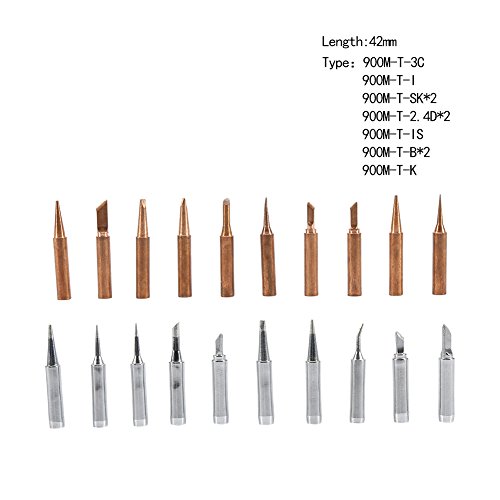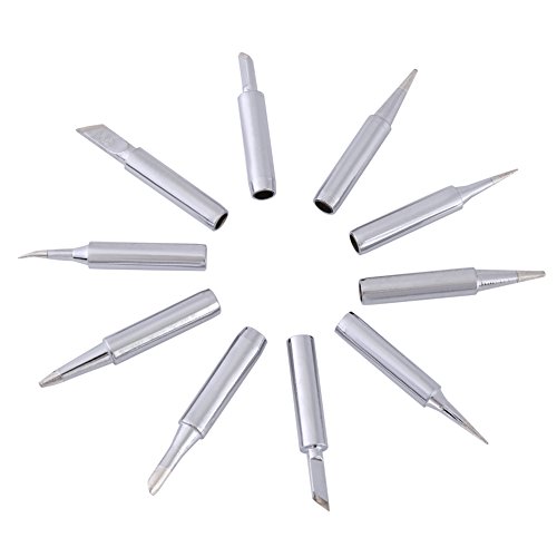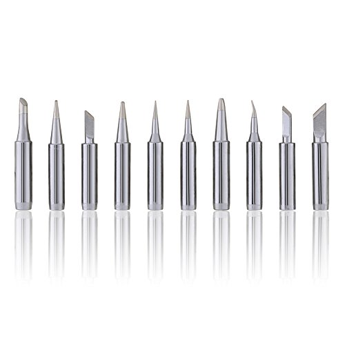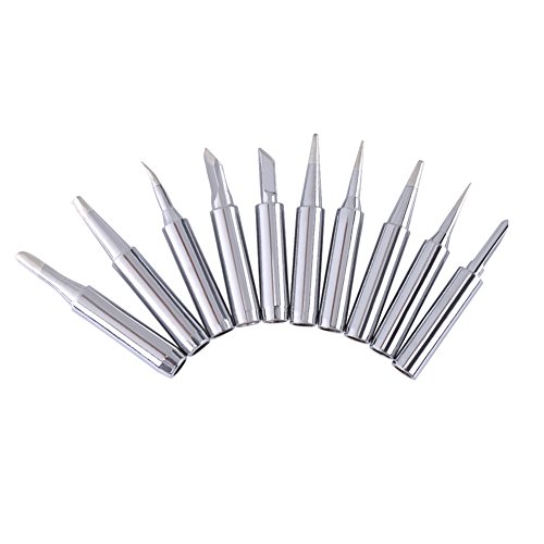 900M-T Series Copper Base Lead-free Electroplated Iron and Nickel Replaceable Solder Iron Tips Set Low Temperature Soldering Station Tool Shape B, SK, 2.4D, 3C, I, IS, K (10 pcs)(Sliver)