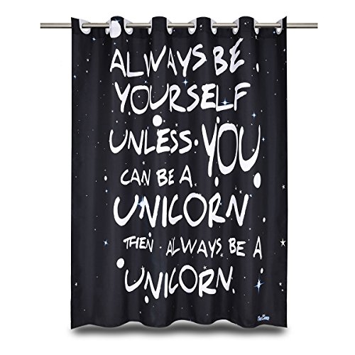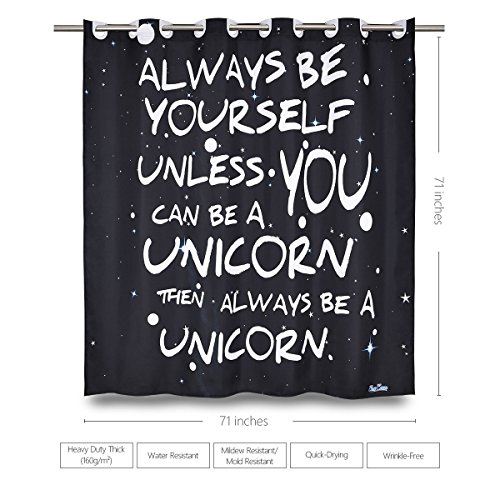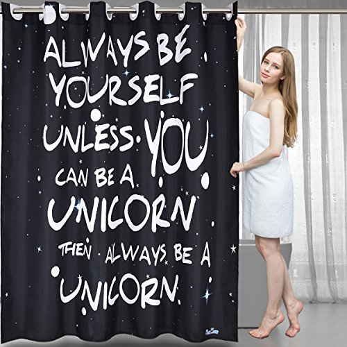 Black Shower Curtain with Words - EnaEzen Black and White Hookless Fabric Unicorn Shower Curtains with Word Sayings for the Bathroom Heavy Duty 71 x 71 inches