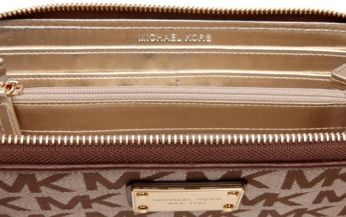 -. Binding : Apparel -. Brand : MICHAEL Michael Kors -. Department : womens -. Feature : Jacquard wallet in logo motif featuring zip-around opening, leather trim, and metallic logo plaque / Tech Compatibility: Galaxy and iPhone 5 / Interior features 8 credit card slots and 2 billfold compartments -. Label : MICHAEL Michael Kors -. Manufacturer : MICHAEL Michael Kors -. Model : 32S12JSE3J -. MPN : mrhb32S12JSE3J PT -. PackageQuantity : 1 -. PartNumber : mrhb32S12JSE3J PT -. ProductGroup : Apparel -. ProductTypeName : HANDBAG -. Publisher : MICHAEL Michael Kors -. Studio : MICHAEL Michael Kors -. Title : MICHAEL Michael Kors MK Logo Zip-Around Continental Wallet