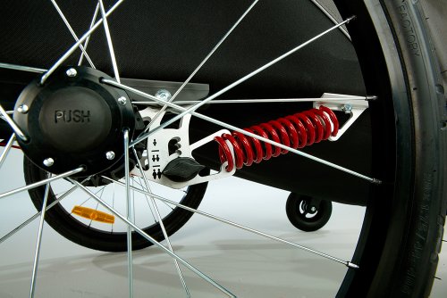 - Feature : Adjustable suspension / Latching system for easy folding / Release buckles allow seat to lie flatduring kid-free errands / Improved parking brake / Retractable sunshade