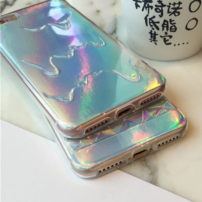Feature 1:Bright Hologram Iridescent Triangle Pastel Melting Rainbow Phone Case
