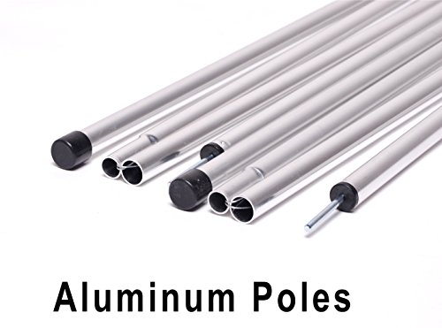ALUMINUM POLES & ALUMINUM STAKES, make it become light tarp design. It’s even small enough to fit into a backpack when all packed up.