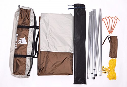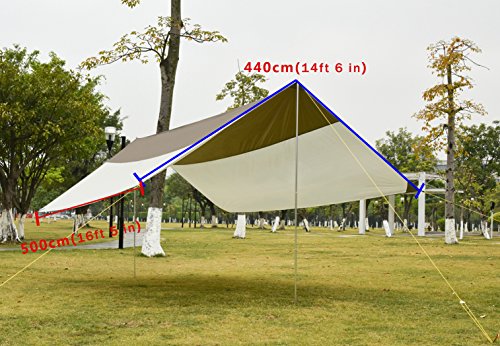 Super Large. Size: 197 x 173 inches (500 x 440 cm). The poles have a height of 96 inches (250 cm). Perfect for 5 to 8 people when camping, hiking or picnicking.