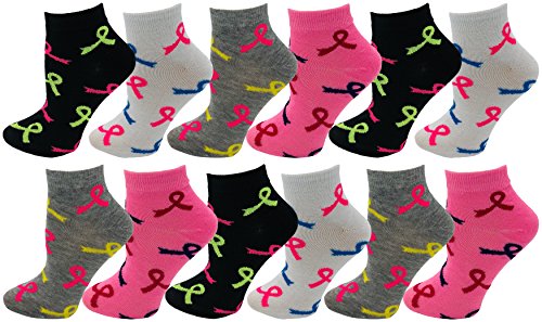 -. Feature : BREAST CANCER AWARENESS: Show your support to breast cancer awareness this year with these premium ankle socks. Featuring a color pallet ranging from pink, white, to black. Designs include pink ribbons, argyle, checkered and more for an assortment of chic patterns. Each pack includes 12 pairs of snazzy assorted socks. / ANKLE OR CREW SOCKS: These low cut ankle or crew socks are the perfect pairs to wear with sneakers, boots, or shoes for a sporty no show sock appearance. Ideal for warmer weather conditions as well as the winter time for a super cute look. Can be worn for going to work, taking a stroll, playing sports, or exercising. / NO SHOW PINK RIBBON PATTERNED: Low cut sports socks or crew socks are suitable for a variety of activities including jogging, cycling, at the gym, playing basketball, and more. These comfortable athletic socks feature a soft surface that is comfortable on the feed through continual wear. / COMFORABLE & MOISTURE WICKING: The predominantly polyester made sock offers breathability and moisture wicking capabilities to keep your feet cool and dry on hot days or through more intensive activities. Also makes a great gift throughout the year. / 12 PAIR BULK PACK: Made with fine fibers including 97% polyester, 2% spandex, and 1% rubber. Sock size 9-11 designed for women's shoe sizes 5-10. Your satisfaction is important to us, please reach out if you have any questions or concerns.