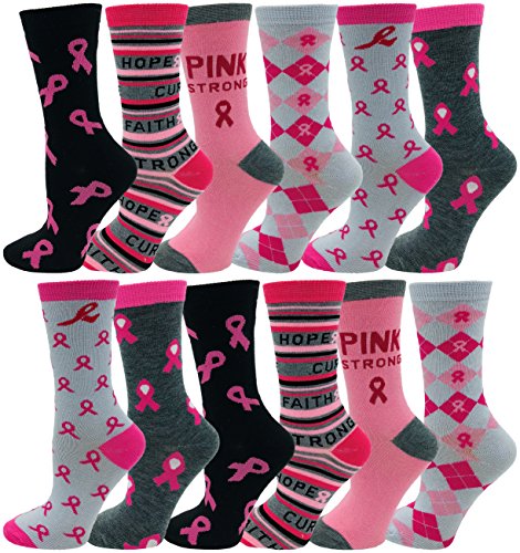 -. Title : 12 Pairs of Womens Breast Cancer Awareness Socks, Pink Ribbon Soft Sport Sock