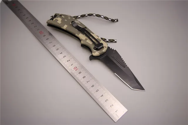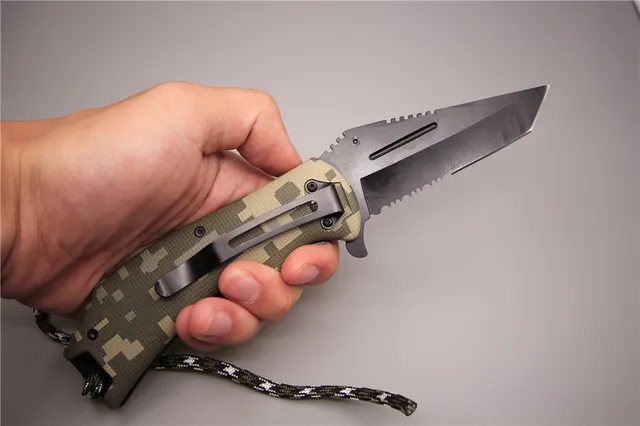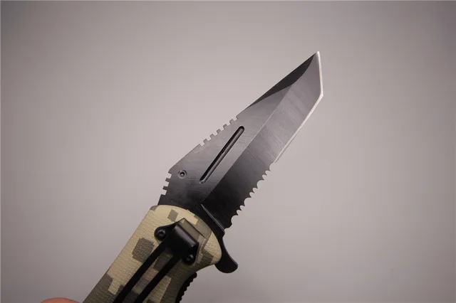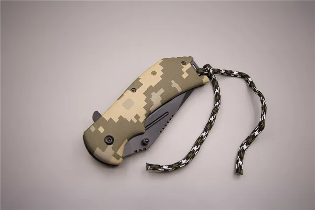 | [해외] 야외 위장 생존 톱니 모양의 사냥 있입니다 전술 karambit 나이프 육군 접는 블레이드 블랙 3cr13 스틸 블레이드 도구 로프 |
