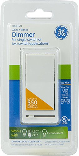 GE Dimmer, 3-Way, Rocker On/Off with Slide, White 18023