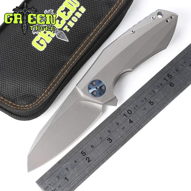 | [해외] Green thorn zt0456 플리퍼 접는 칼 볼 베어링 d2 블레이드 titanium 핸들 야외 캠핑 사냥 전술 나이프 edc 도구 |