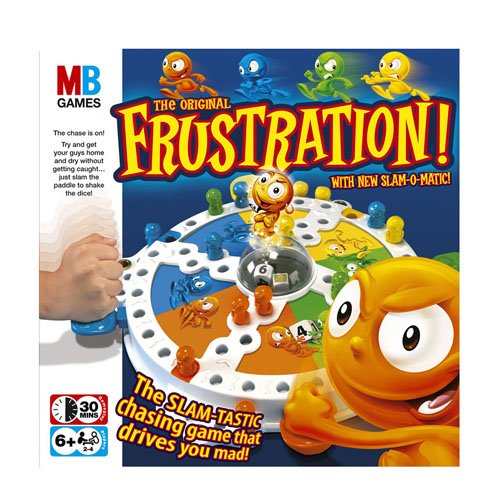-. Feature : Frustration, the classic game, has a new Slam-o-matic feature / The new whacking feature and frustrated characters give this game a new dimension / If you're lucky you can gain the powers of the Genie to protect your characters from being sent home / Contains 2 die / For 2 to 4 players