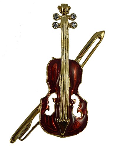 -. Title : Violin with Bow Brooch with Enamel