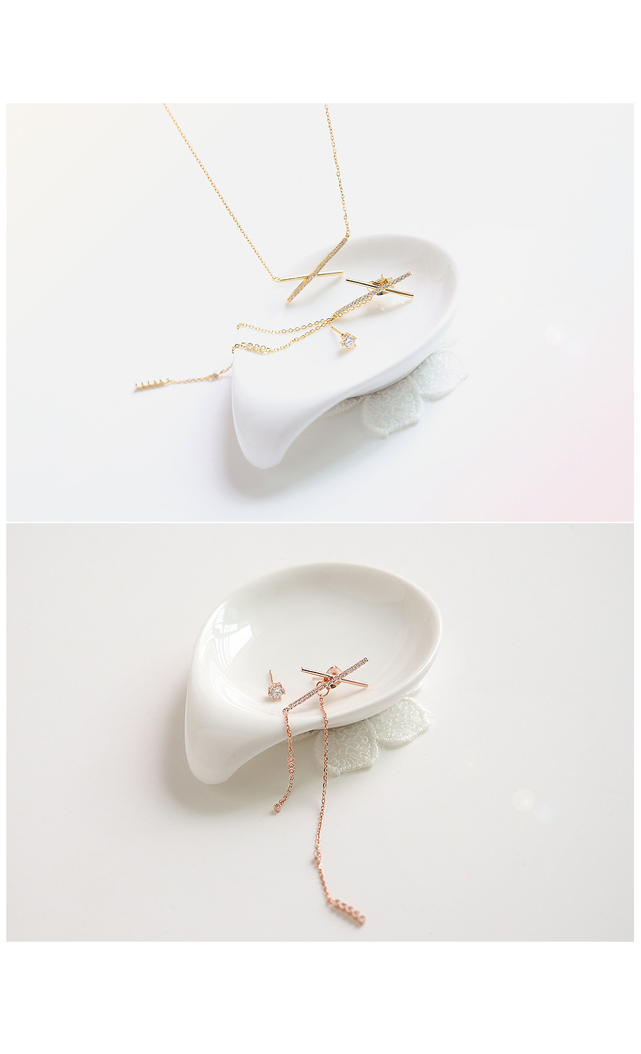 유니크한 X디자인의 심플,모던한 [귀걸이+목걸이] 세트제품.