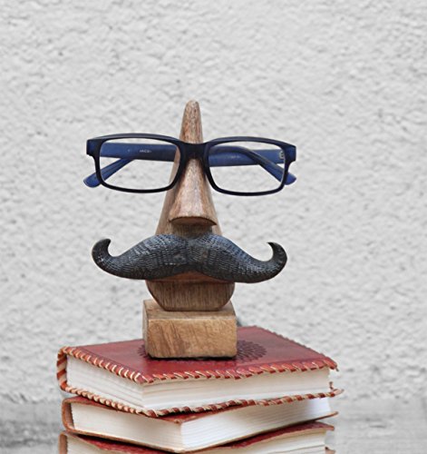 Witty Hand Carved Wooden Eyeglass Spectacle Holder with an Amusing Mustache Home Decorative Store Indya Christmas Thanksgiving Gifts
